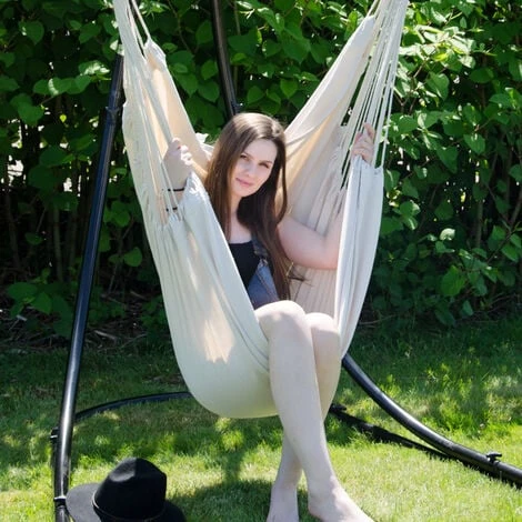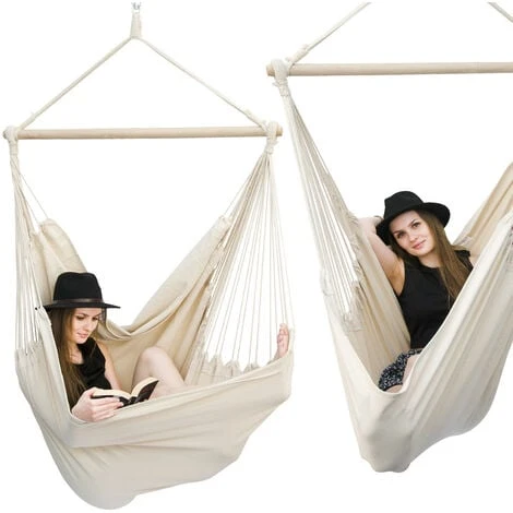 L’installation est simple et rapide. Pour accrocher votre hamac, il vous suffit d’une branche d’arbre, un crochet vissée au plafond, un support pour fauteuils-suspendus (vendus séparément, non compris dans la livraison).
