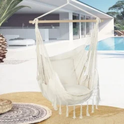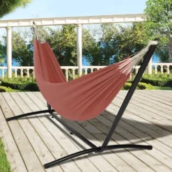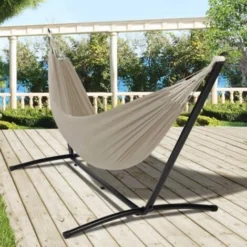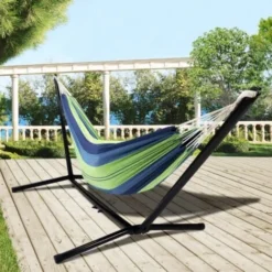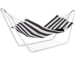 Hamac Avec Support Métal Et Toile Rayée Noire, Blanche Et Chocolat