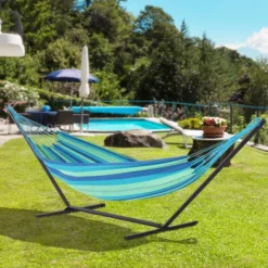 OUTSUNNY Support Pied De Hamac Structure Robuste Bois De Pin Pré-huilé Charge Max. 120 Kg