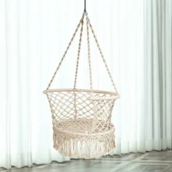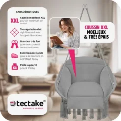 Fauteuil Suspendu HUEVO Pliable Ajouré Gris Avec Coussin Gris