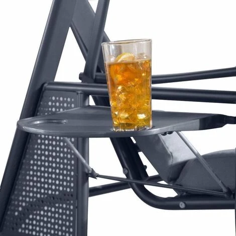 Grâce à sa construction robuste, cette balancelle est parfaite pour n’importe quel jardin, et grâce à son revêtement en poudre gris luxueux, elle peut être laissée dehors toute l’année ! Le banc est doté de part et d’autre d’une plate-forme pliante très pratique où vous pouvez poser vos boissons rafraîchissantes ou votre nourriture. Avec ses coussins larges et confortables + le coussin pour le cou et bien sûr le parasol rotatif, vous pouvez profiter de la chaleur de l’été pendant des heures sans vous brûler.