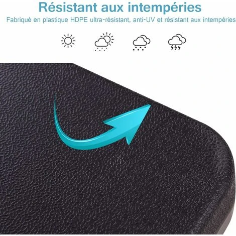 - ăMatĂ©riau sĂ©lectionnĂ© rĂ©sistant aux UV :ăLa base est fabriquĂ©e en HDPE de haute qualitĂ©, qui prĂ©sente une grande rĂ©sistance aux UV. La construction est durable et ultra-rĂ©sistante et a une durĂ©e de vie longue afin de rĂ©sister aux conditions climatiques les plus difficiles.