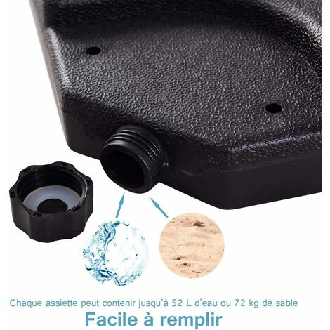- Base rechargeable pour ajouter du poids avec du sable ou de l’eau