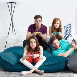 Pouf Géant XXL Intérieur Et Extérieur, Déhoussable, Salon, Jardin, Deco Arts Bleu Pétrole