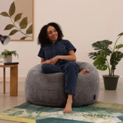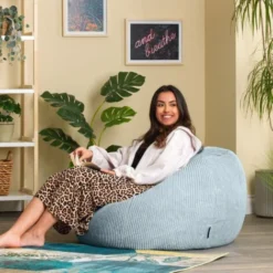 Icon Pouf Classique En Velours Côtelé Kingston, Fauteuil Pouf Pour Adultes, 85cm X 50cm, Bleu Glacé