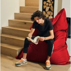 Pouf Géant XXL Intérieur Et Extérieur, Déhoussable, Salon, Jardin, Deco Arts Rouge Piment