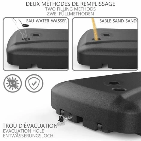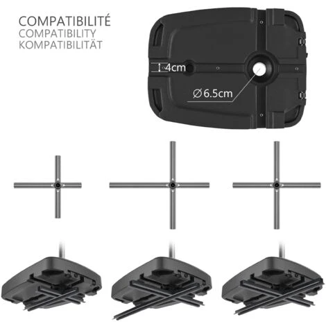 - Cette base est conçue pour les pieds en croix et indispensable pour stabiliser le parasol.