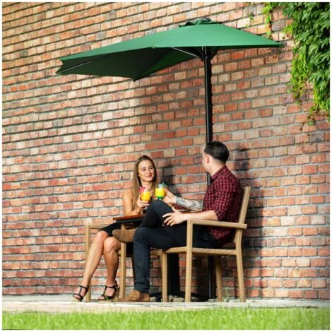Besoin d’un demi-parasol ? Ce modĂšle en demi-lune, idĂ©al pour le balcon, bloque efficacement les rayons et la chaleur du soleil grĂące Ă sa toile de 270 x 135 cm. Issu de la gamme d’Ă©quipement de jardin Uniprodo, il prĂ©sente un facteur de protection de 50+ et arrĂȘte 98 % des UV, prĂ©venant par le fait mĂȘme les coups de soleil et autres dĂ©sagrĂ©ments estivaux. Vous et vos hĂŽtes pourrez donc vous concentrer sur votre verre ou assiette sans avoir Ă vous soucier de votre Ă©piderme. Ce modĂšle comporte un soufflet de dĂ©compression qui amĂ©liore la circulation d’air et empĂȘche les bourrasques de le renverser. Son armature et ses matĂ©riaux sĂ©duisent par une soliditĂ© et une durabilitĂ© hors du commun â mĂȘme quand le temps n’est pas au beau fixe. Optez pour un parasol en demi-lune Uniprodo !
