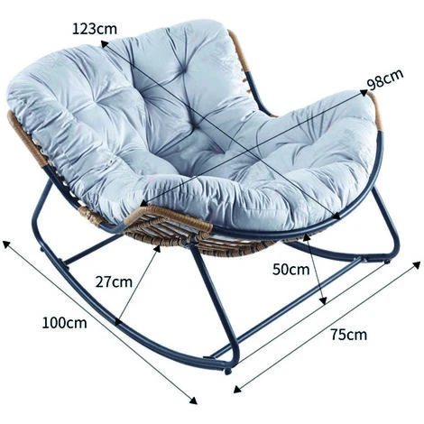 Profitez d’un moment en détente dans ce grand fauteuil à bascule en résine tressée de couleur naturelle. Son gros coussin gris clair vous apportera tout le confort que vous recherchez pour un moment de relaxation avec un bon bouquin. Vous pourrez profiter de son confort en été au soleil comme en hiver au coin du feu. Son design en effet rotin apportera une touche de modernité à votre extérieur ou intérieur. Sa structure noire en acier recouvert de peinture epoxy assure longévité et robustesse au produit ce qui vous permettra d’en profiter le plus longtemps possible. Alors n’hésitez plus et craquez pour ce joli fauteuil à bascule hyper cosy.