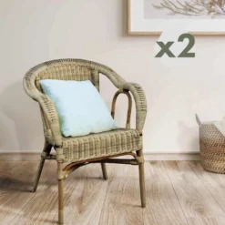 Fauteuil En Rotin Naturel Vieilli Chillvert Parma 60x66x81 Cm Avec Finition En Tissu Pitrit