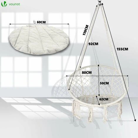 - Avec un coussin épais, notre fauteuil suspendu vous offre un confort supplémentaire et un sentiment de détente.