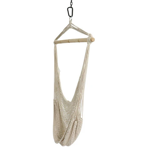 4. Ne craignez pas que votre siège suspendu glisse de la barre transversale – la fixation de la corde est fermement connectée au poteau en bois, il suffit de l’accrocher au hamac du fauteuil.