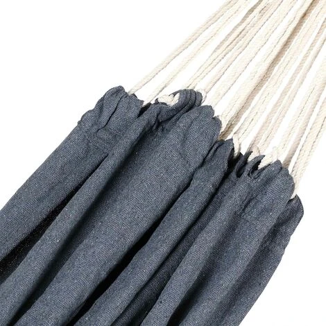 Ce hamac se compose d’un mélange coton/polyester respirant de 320g/m². Le tissu souple est à la fois doux, hydrofuge et résistant aux intempéries. Par ailleurs, les cordes font preuve d’une granderobustesse aux extrémités grâce aux tresses torsadées.