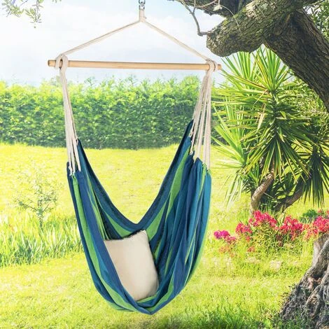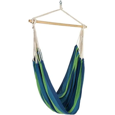 Hamac Siège Suspendu Avec Toile Rayée Bleue Et Verte