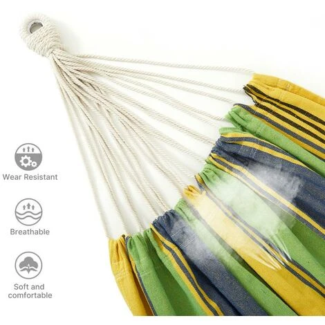 ● [Tissu Respirant] : La surface du hamac respirante en polyester tissé est plus épaisse, plus serrée et plus naturelle. Il vous permettra de profiter de journées de farniente à la saison chaude, au bord du lac, sur la terrasse ou dans la cour sous votre arbre préféré.