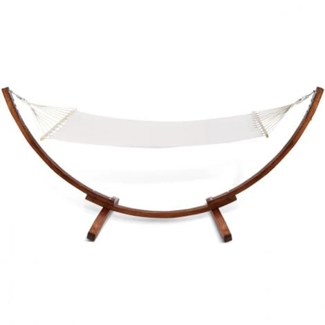 Accordez-vous des moments de pure détente dans votre jardin ou autour d’une piscine pour les beaux jours grâce au hamac XL avec support bois et toile écrue.Véritable cocon dans lequel se bercer, réservez-vous des instants de bien-être en toute tranquillité tout au long de l’été !Son design moderne grâce à ses courbes et naturel s’adaptera parfaitement à votre extérieur.Sa structure en bois vernis de mélèze vous apporte une réelle stabilité, fiabilité et robustesse que vous apprécierez.Pratique, sa structure permet de suspendre surement la toile en tissu.Fabriquée à 55% de coton et 45% de polyester 320g/m2, sa toile vous garantit une résistance à l’usure ! Douce et agréable au toucher, la toile du hamac vous apporte un confort maximal à deux ou tout seul avec une surface de couchage de 200 cm (Longueur) x 110 cm (largeur).Facile à monter.Dimensions du hamac XL avec toile écrue- Dimensions totales : Longueur 310 CM x largeur 120 CM x Hauteur 120 CM- Surface de couchage : Longueur 200 x largeur 100 CM- Epaisseur du support bois : 8 x 5 CM- Composition de la toile : 55 % coton, 45 % polyester 320 gr/m²- Dimensions de la toile : L. 200 x l. 110 CM- Charge maximale supportée : 150 kg- Poids : 24 kgDécouvrez également toute notre gamme de hamacs pour profiter de votre été !