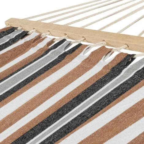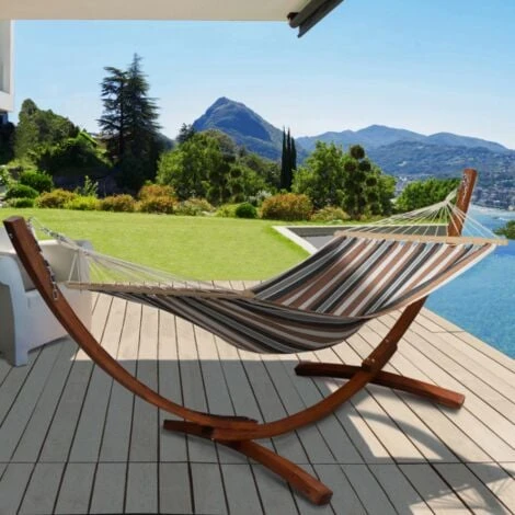 Hamac XL Avec Support Bois Et Toile Rayée Noire, Blanche Et Chocolat
