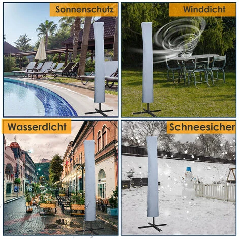 【Étanche】La housse de parasol est en fibre 100% polyester. La structure du matériau assure une grande flexibilité et une utilisation en masse. L’excellente résistance à l’eau garantit qu’il ne rétrécira pas dans des conditions météorologiques difficiles telles que la pluie, la neige, le gel, etc. Délavé ou déformé
