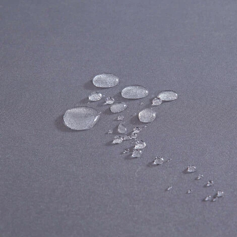 La toile polyester déhoussable des coussins a subi un traitement déperlant pour son usage extérieur ; l’eau ne pénètre pas et reste entièrement à la surface du tissu.