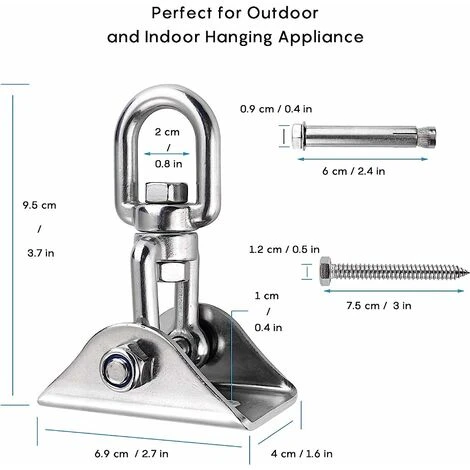 SUR & ROBUSTELes crochets de balanoires robustes de qualit commerciale sont conus pour tre utiliss par des enfants et des adultes, et conus pour une utilisation rsidentielle une cote de 500kg, ils sont scuriss.
