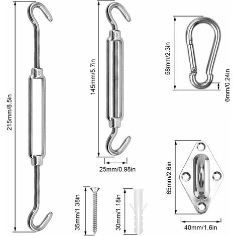 - ✤ Kit de matériel pour pare-soleil de haute qualité : le kit de fixation pour voile d’ombrage est fabriqué en acier inoxydable 304 de haute qualité, capacité de charge élevée, durable et robuste.