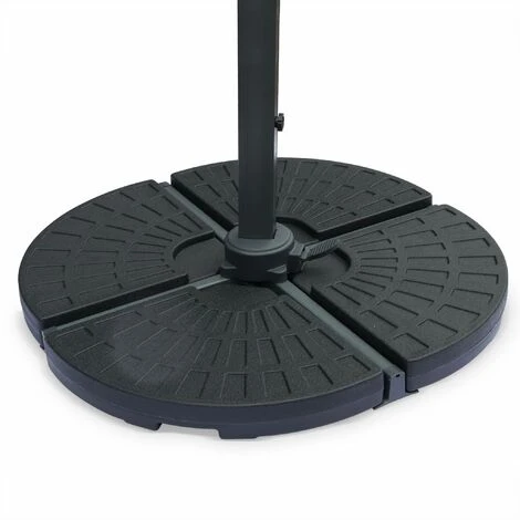 Ces dalles lestées conviennent parfaitement à un parasol déporté avec un pied de type croix