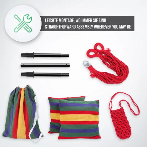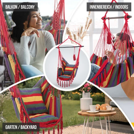 Un meuble pratique et polyvalent surprenant, une chaise hamac ajoutera sans aucun doute un peu de style à votre espace de détente. Pouvant être installée à l’intérieur comme à l’extérieur, cette chaise deviendra votre coin préféré lorsque vous aurez envie de vous détendre avec votre livre préféré ou de boire une tasse de thé le matin. Doté d’une articulation pivotante à 360 degrés, ce hamac garantit à la fois confort et praticité. Que vous souhaitiez créer votre propre coin de relaxation, ajouter une surface d’assise sans sacrifier l’espace au sol ou simplement moderniser votre mobilier de jardin, ce hamac a tout ce qu’il vous faut!