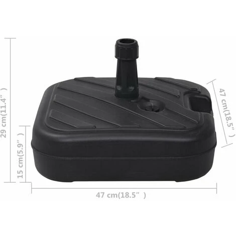 Le pied de parasol a une entrée d’eau et une sortie d’eau avec des bouchons. Il peut être rempli avec 24 L d’eau ou 28 kg de sable. Sans le remplissage, le pied de parasol est léger, ce qui le rend facile à transporter et à ranger grâce à la conception de la poignée. Avec notre base de parasol, votre parasol restera en place !