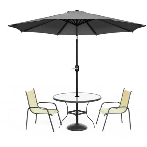 4. Support Solide: Le cadre du parapluie en acier enduit de poudre ne rouille pas ni ne se décolora, qui montre une bonne stabilité en résistant au vent. Le tube vertical de parasol fait 38mm de diamètre. Il est composé de deux parties vissées ensemble. Assurez-vous d’augmenter le poids avant utilisation pour améliorer la stabilité.