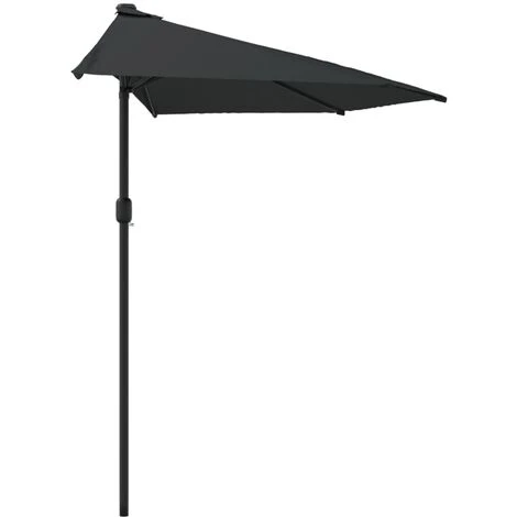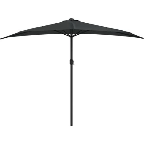 Cet élégant parasol de balcon est parfait pour créer de l’ombre et vous protéger des rayons UV nocifs. Fabriquée en polyester anti-UV et anti-décoloration, la couverture de parasol vous offre une protection optimale contre le soleil et est facile à nettoyer. Avec un diamètre de mât de 38 mm, il pourrait être monté sur le support ou au milieu de tables avec trou. Sa forme demi-ronde ajoute également au charme unique du parasol. Le mât en aluminium résistant, ainsi que les 5 nervures en acier robustes, rendent le parasol très stable et durable. Le parasol de jardin peut être facilement ouvert et fermé grâce au mécanisme à manivelle. Veuillez noter que le socle de parasol n’est pas inclus dans la livraison. Nous vous recommandons de traiter le tissu du parasol avec un spray imperméabilisant s’il est soumis à des fortes précipitations.