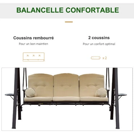 – Grand coussin d’assise et de dossier confortable grâce à son rembourrage souple de 8 cm d’épaisseur (2 oreillers fournis) avec cordons d’attache à l’armature