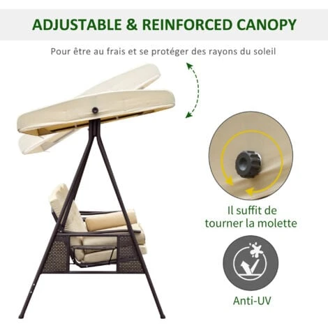 – Toile de toit en polyester filé haute densité 220 g/m² (inclinaison réglable afin de vous adapter aux différentes hauteurs du soleil suivant l’heure de la journée)
