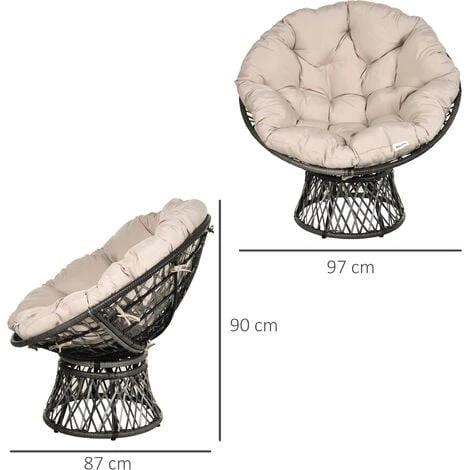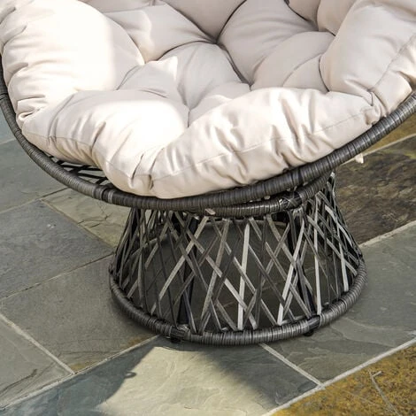 Ce magnifique fauteuil papasan ajoutera une touche cosy à votre intérieur ou extérieur. Pivotant à 360° et fourni avec un grand coussin moelleux, son confort d’assise est inégalable. À adopter de toute urgence !