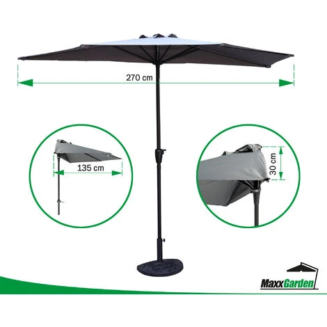 - Taille supérieure du parasol (largeur x profondeur x hauteur) : 270 cm x 135 cm x 30 cm