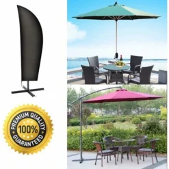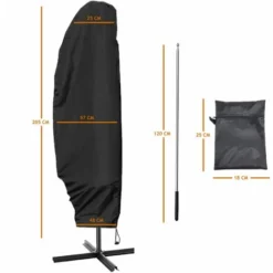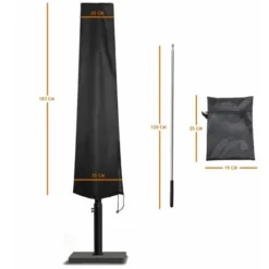 Couverture étanche En Oxford Noir A Pour Parasol De Jardin De 265cm, Avec Housse De Protection