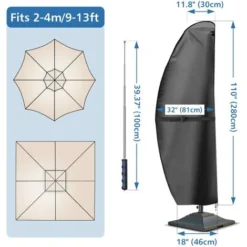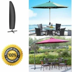 Housse De Protection Pour Parasol De Jardin De 265 Cm En Tissu Oxford Imperméable, Couleur Noire A