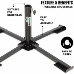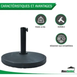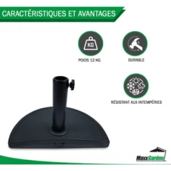Pied Du Parasol Demi-cercle – Avec Béton – Support De Tube Réglable – 12 Kg – Noir – MaxxGarden