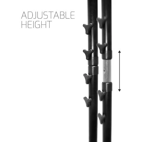 Équipé d’un solide support vertical en acier inoxydable revêtu de poudre noire.