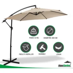 OUTSUNNY Parasol Rectangulaire Inclinable Alu Acier Polyester Haute Densité DiamÚtre 2 M Chocolat