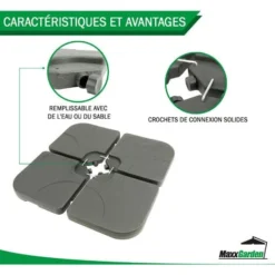 Pied De Parasol – Dalle Pour Parasol Ă Lester – 50x50cm – 60kg Une Fois Remplie – Noir – MaxxGarden