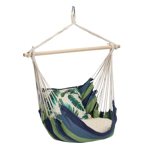 Ce hamac est un accessoire idéal pour les journéeschaudes. En feuilletant votre roman préféré dans le jardin ou lors d’excursionsfamiliales dans le parc, le siège suspendu en coton peut vous accompagnerpartout. Il fait bonne figure dans le salon également Il n’y a pas seulementune fonction décorative, mais diffuse aussi un sentiment de confort. Vouspouvez le monter en toute sécurité grâce au mousqueton et à la consolidation autoit.