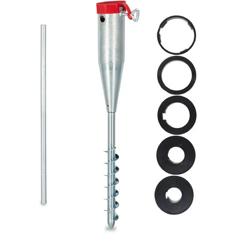 Au lieu de courir après vos parasols qui s’envolent, profitez pleinement de l’ombre rafraîchissante grâce à la douille de sol robuste en acier. Le support à vis convient également pour l’ancrage d’étendoirs à linge ou de hampes. La douille de sol comprend des adaptateurs pour 5 diamètres différents. Le pied de parasol peut être vissé dans le sol à deux mains grâce à la tige filetée. L’adaptateur, la tige et la vis de verrouillage peuvent être rangés à l’intérieur de la douille de sol pour gagner de la place.