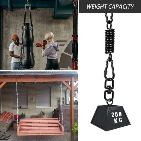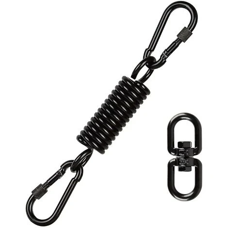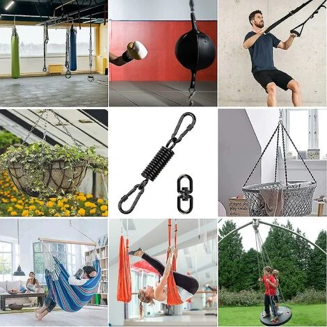 Matériau en acier inoxydable Le fauteuil suspendu à ressort est fabriqué en acier inoxydable de haute qualité, durable, haute dureté, forte capacité de charge, résistance à la corrosion, dur et sûr.Forte capacité de charge Le mousqueton peut supporter jusqu’à 250 kg, vous pouvez donc utilisez-le en toute sécurité. Nous proposons également un crochet orientable à 360° pour éviter l’usure de votre suspension. application La chaise suspendue à ressort a une large gamme d’utilisations, les ressorts en acier inoxydable de haute qualité conviennent aux sangles de transport intérieures et extérieures, aux auvents, aux anneaux de gymnastique, aux hamacs de yoga, aux balançoires, aux chaises à bascule, aux sacs de sable, aux chaises suspendues et au yoga aérien. Assemblage pratique L’unique la conception intégrée peut être installée en quelques minutes, ce qui vous fait gagner du temps et vous facilite la vie. 1setCouleur du produit : noirTaille du produit : 14.5*3.5cm