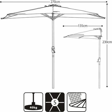 - Diam¨¨tre du parasol: 270cm, hauteur du parasol: 230cm, diam¨¨tre du m?t: 38mm. Couverture de parasol faite de 100% polyester d’environ 160g / ©O.