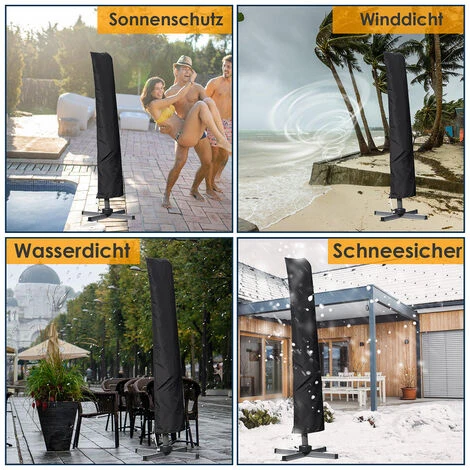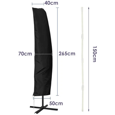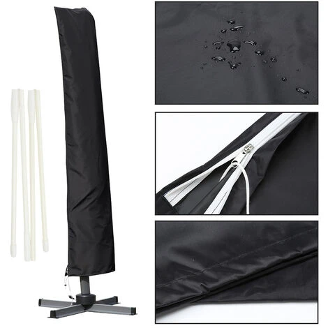 – Avec tige et fermeture éclair, pour une mise en place plus facile sur le parapluie debout