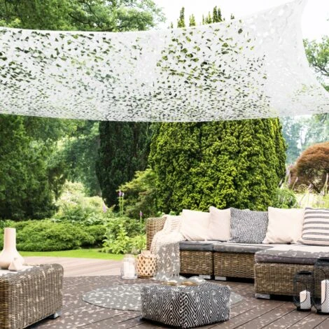 Installez votre voile d’ombrage au design ombrière au-dessus de vos espaces extérieurs pour profiter dès à présent d’une ambiance chic et design ! En plus de ses fonctions d’ombrage partiel, l’ombrière laisse passer certains rayons lumineux pour créer des formes sur vos sols !Les généreuses dimensions de votre voile d’ombrage ombrière de 4×6 M vous procurent un large espace de couverture ! Le coloris blanc de la toile, chic et tendance ornera vos aménagements extérieurs tout en vous protégeant des rayons du soleil !Avec son design camouflage blanc, très tendance, vous pourrez attacher la toile où bon vous semble ; chaque angle de votre voile est muni d’une cordelette de 24 cm de longueur. Pour faciliter la pose de votre voile, pensez à vous munir de kit de fixation murale ou de mât de fixation pour attacher votre toile !La matière en polyester du voile ajouré apporte de la légèreté à la toile ce qui permet de ne pas créer un sentiment d’étouffement et de ne pas retenir davantage la chaleur.Profitez dès à présent de vos espaces extérieurs en créant une ambiance chaleureuse pour vous détendre ! Vous pouvez superposer plusieurs voiles d’ombrage et ainsi décliner vos ambiances selon vos envies !Dimensions du voile d’ombrage ombrière 4×6 M blanc- Dimensions totales : Longueur 600 x largeur 400 CM- Longueur des cordelettes : 24 CM- Matière polyester ajouré avec filet de renfort inclus- Traitement anti-UV- Forme de la toile : rectangulaire- Se fixe aux arbres, murs, poteaux, etc.Besoin d’un kit de fixation ou d’un mât pour votre voile ? Rendez-vous sur notre boutique en ligne pour découvrir nos solutions de fixation !Découvrez également nos autres modèles et coloris de voiles d’ombrage et d’ombrières disponibles sur notre boutique en ligne.