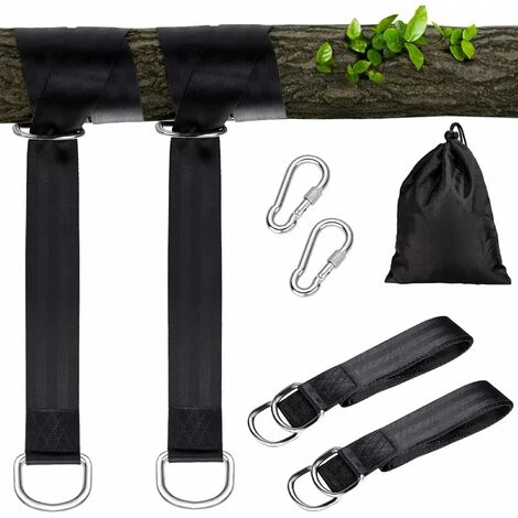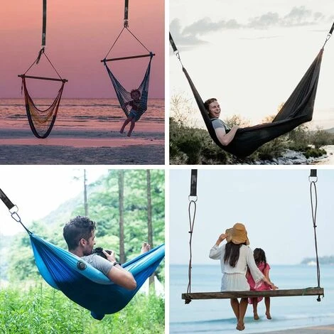 Mousqueton et sac de rangement : les deux mousquetons en acier inoxydable nickelé ont une bonne résistance à la rouille et à la corrosion. Le sac de rangement pratique est adapté pour ranger les sangles de balançoire pendant le camping ou les voyages.